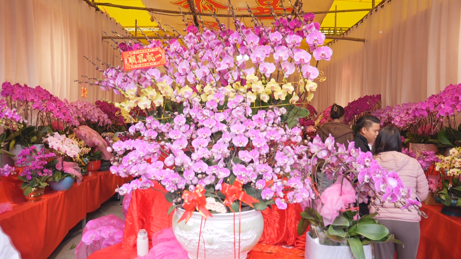 兰花档档主石先生:“市民比较喜欢选兰花,兰花有2000多年历史,因为过年嘛,就要以红火为主,黄色的寓意招财,红色的喜庆,我们今年兰花整体价格也不贵,花的品质也可以,30多元一株,就是非常漂亮的。”